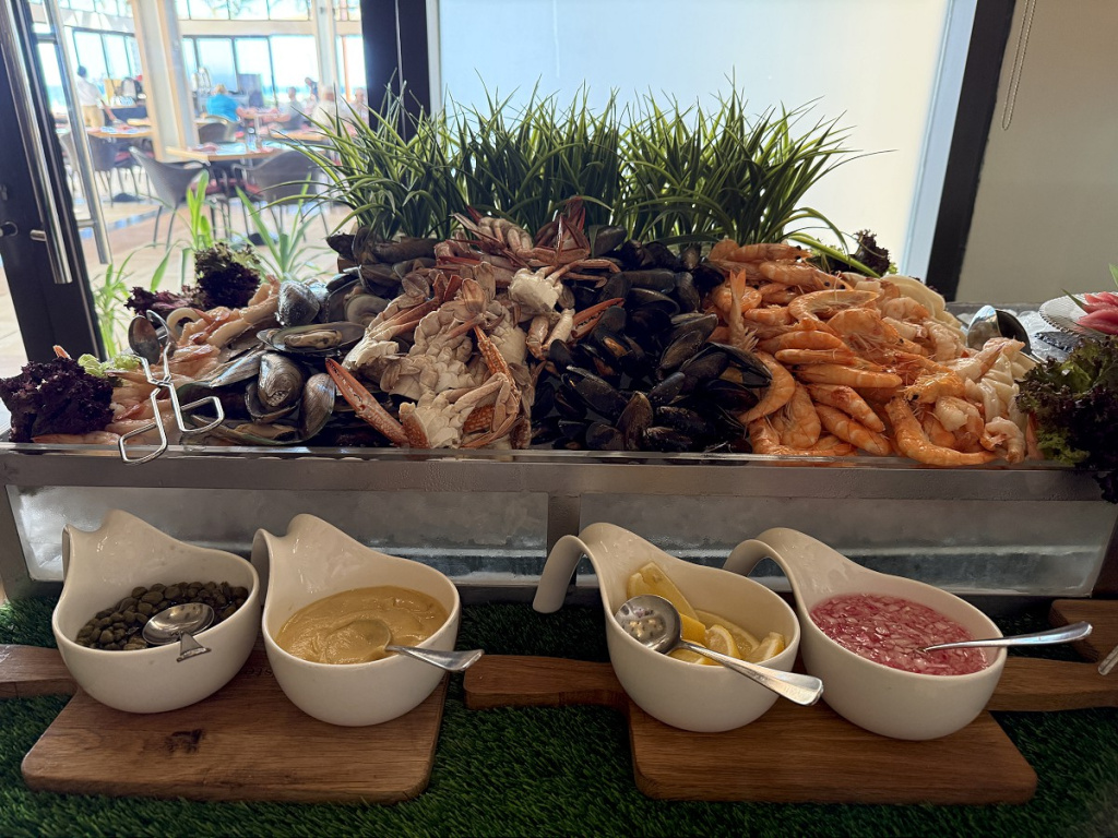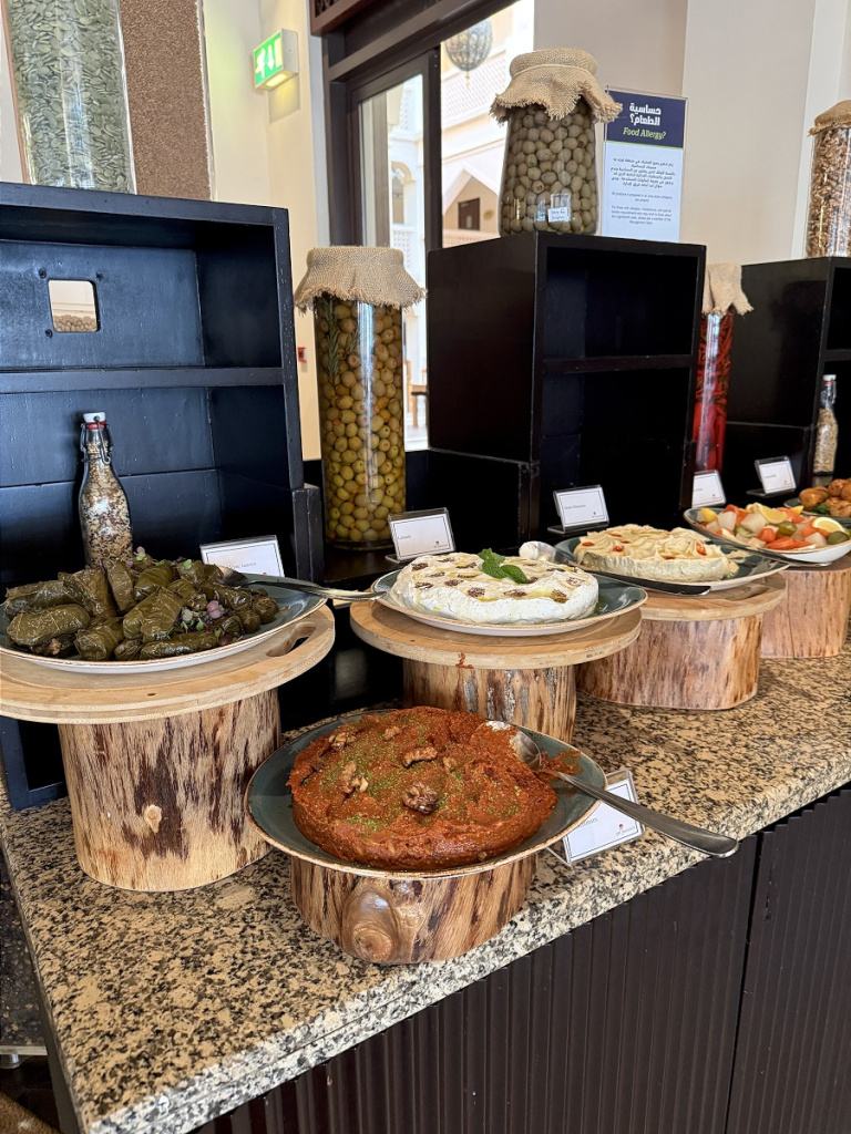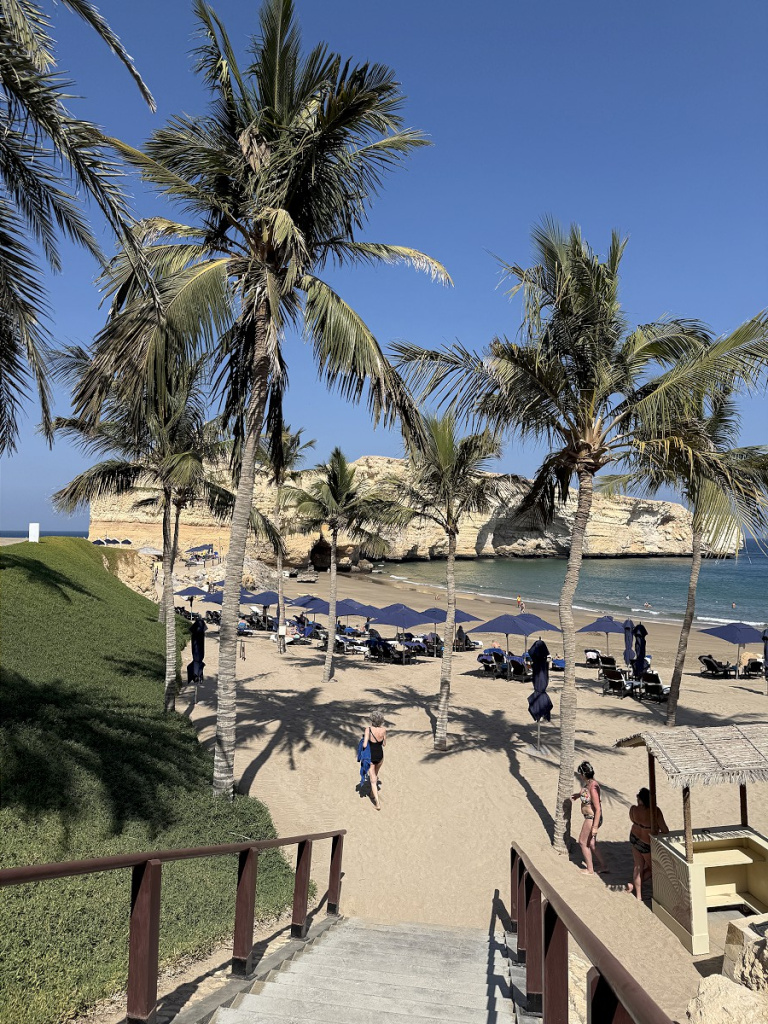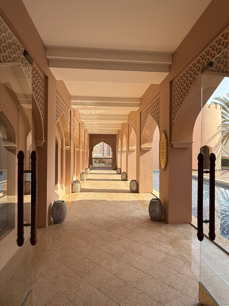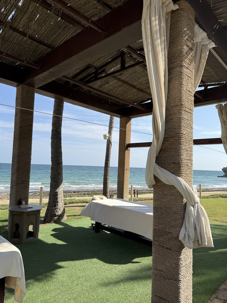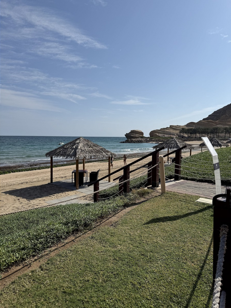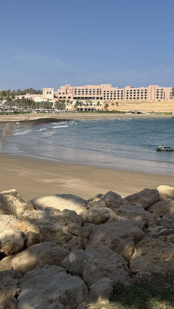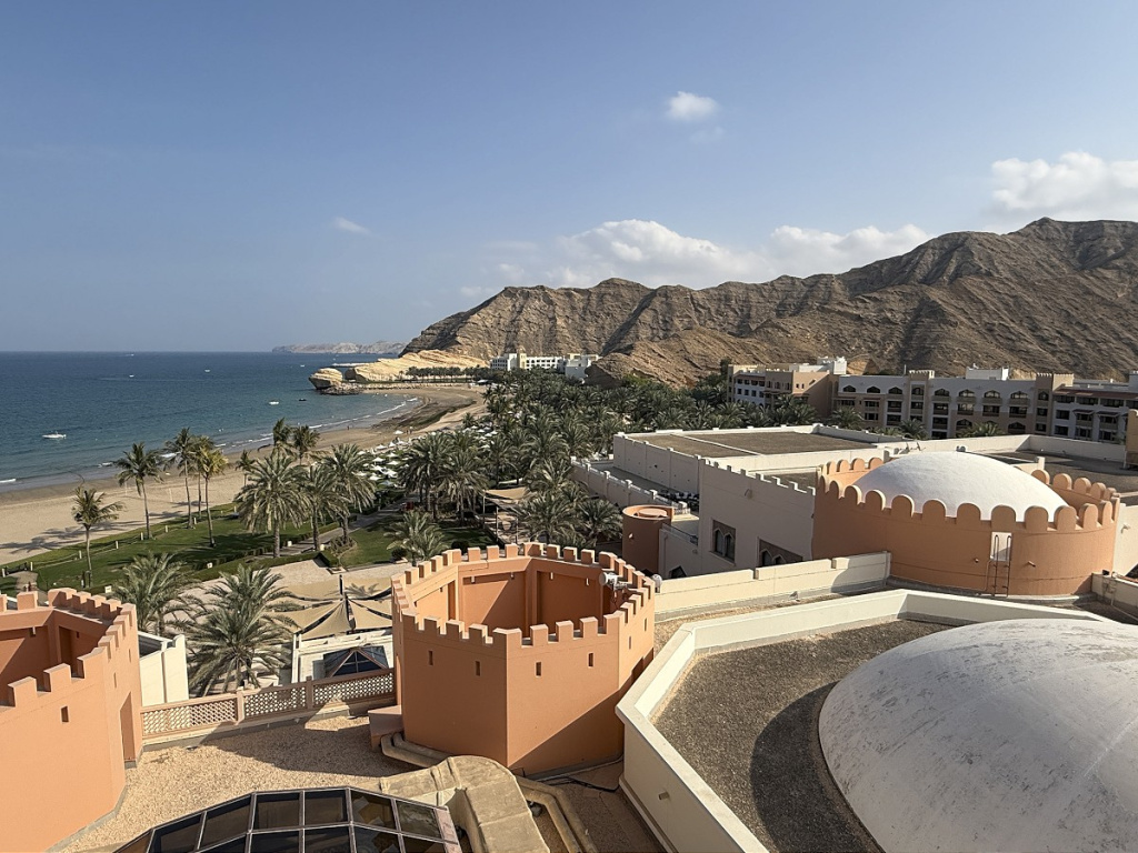 В отеле нам понравилось отсутствие суеты и китча, классная гастрономия (это был один из немногих случаев, когда перед ланчем мы всякий раз спорили, отдать ли предпочтение превосходному шведскому столу или пойти в полюбившийся морской ресторанчик на берегу), просторные номера с идеальным видом на Оманский залив, променад и знаменитую арку Барр-эль-Джисса.