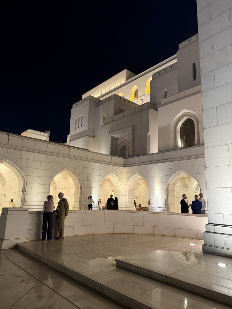 Ну и наконец, ради самого нетривиального впечатления за всю поездку — спектакля в Королевском Оперном театре. Визит в Оперу Маската- это еще один, помимо мечети и рынка, способ понять, что же представляет собой современный Оман. В фойе театра прогуливаются благоухающие женщины всех национальностей в шелках, органзе и бархате, а белоснежные зайтеливые массары украшают гордо посаженные головы арабских мужчин. Бенгальский кедр и итальянский мрамор в отделке холлов ослепляют свои великолепием. Уютный зал с превосходной акустикой, роскошными креслами и выдвигающимися ложами обещает не просто отличное звучание, но и комфортные часы в креслах «бизнес-класса».